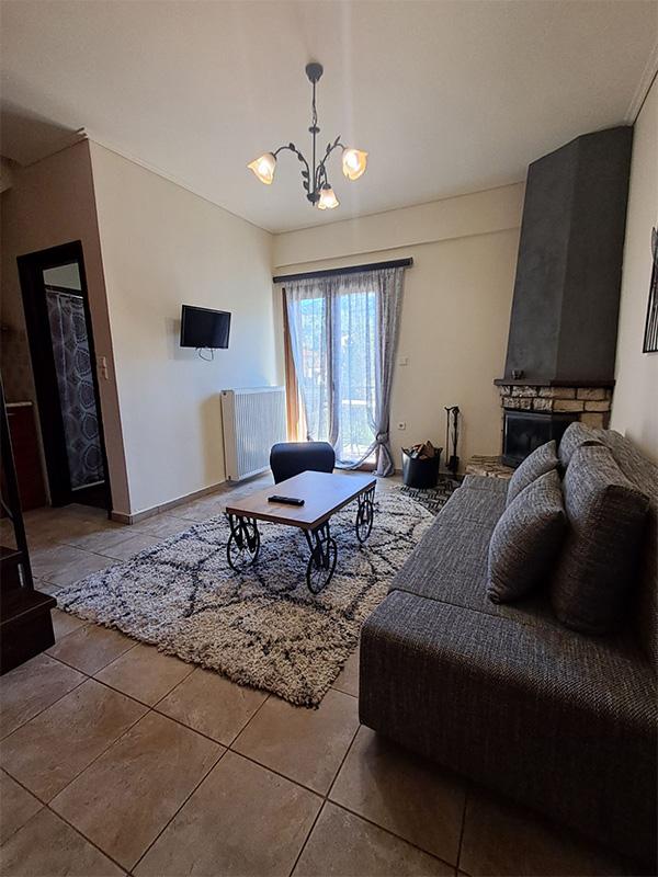 Το κτίριο είναι νεόδμητο με πέτρινες λεπτομέρειες και στέγη και μοναδική θέα στο Χελμό. Η σύγχρονη αρχιτεκτονική του, διατηρώντας τα παραδοσιακά στοιχεία της περιοχής εξασφαλίζει άριστο συνδυασμό σύγχρονων ανέσεων σε γραφικό περιβάλλον.